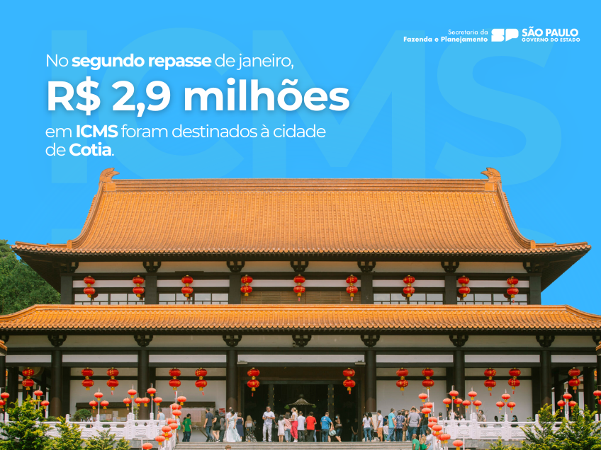 ​​A Secretaria de Fazenda e Planejamento do Estado de São Paulo (Sefaz-SP) transfere nesta terça-feira (16) R$ 405 milhões para os 645 municípios paulistas. Esse repasse é referente ao segundo pagamento de ICMS em 2024, e representa 25% da arrecadação do imposto. O valor é distribuído entre as administrações municipais de acordo com o Índice de Participação dos Municípios (IPM) definido para cada cidade, e corresponde ao montante arrecadado no período de 8 a 12 de janeiro.