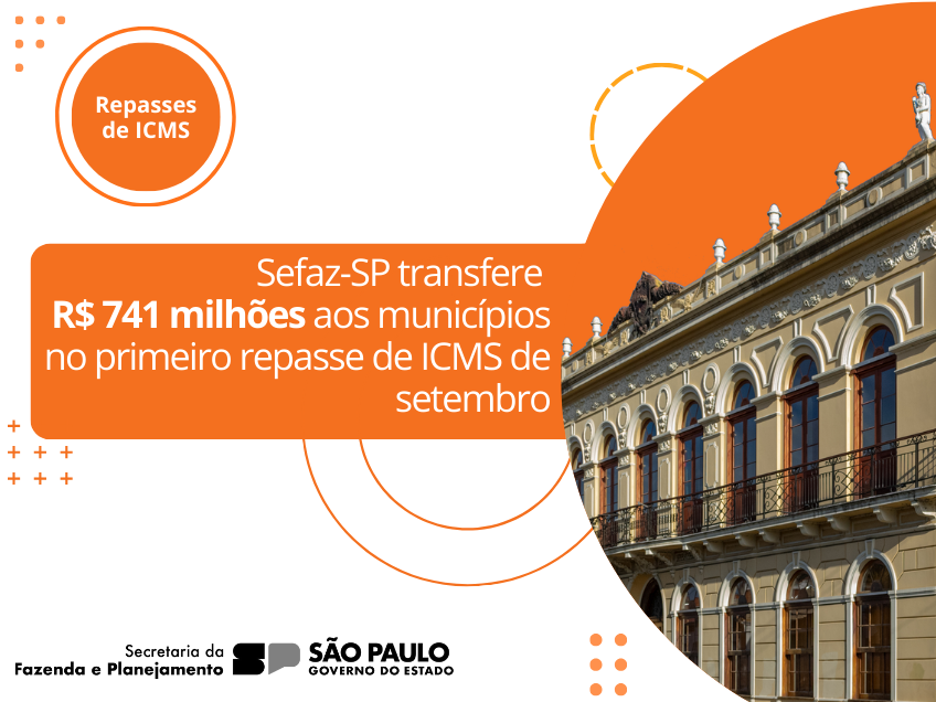 ​​A Secretaria da Fazenda e Planejamento do Estado de São Paulo (Sefaz-SP) realizou nesta terça-feira (12) o primeiro repasse de ICMS relativo ao mês de setembro aos 645 municípios paulistas. O total depositado às administrações municipais foi de R$ 741,8 milhões, referentes à arrecadação de 4/9 a 8/9.